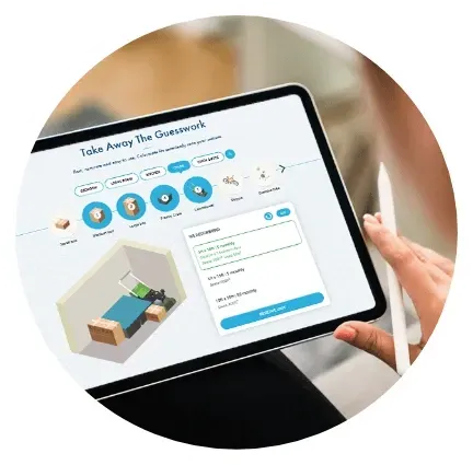 Chaque box de stockage est différent, notre simulateur vous permet de calculer facilement la surface de stockage et le volume de stockage dont vous avez besoin.